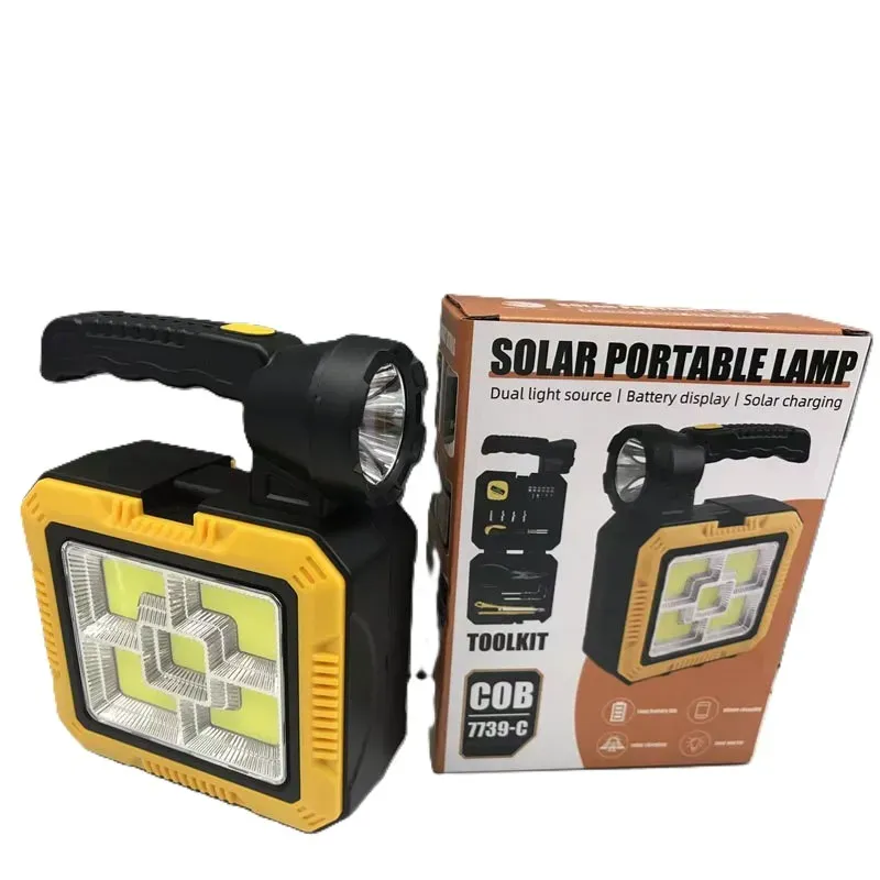 مصباح طوارئ متعدد الوظائف يعمل بالطاقة الشمسية مع صندوق أدوات مدمج – إضاءة قوية + أدوات يدوية أساسية في منتج واحد مثالي للطوارئ، السيارة، التخييم، والمنزل
